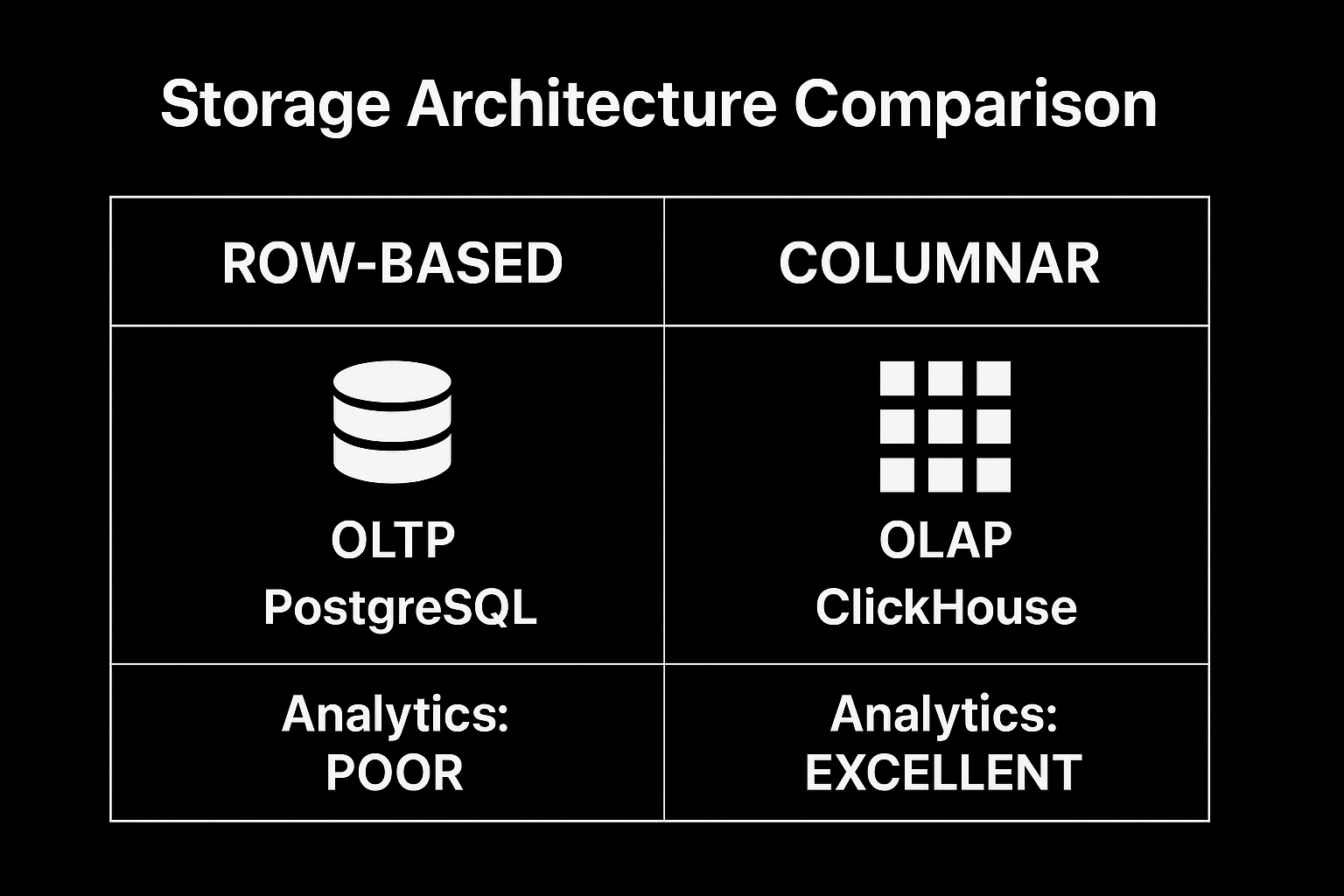 When your application starts handling millions of events per day and users expect sub-second analytics dashboards, traditional databases hit a wall. Row-based systems like PostgreSQL excel at retrieving individual records but struggle when aggregating millions of rows for analytics queries. This is where ClickHouse solves the problem.